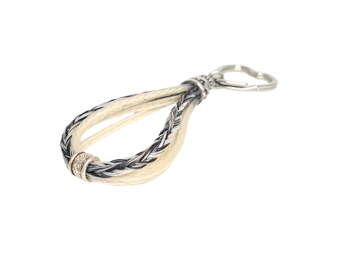Dieser handgefertigte Schlüsselanhänger wird individuell aus Schweifhaar deines Pferdes gefertigt – liebevoll verarbeitet mit biologischem Leder und nickelfreiem 925-Sterlingsilber. Die feine Herzgravur verleiht ihm eine persönliche Note, während die Kombination aus weißem Pferdehaar und schokoladenbraunem Leder für zeitlose Eleganz sorgt.