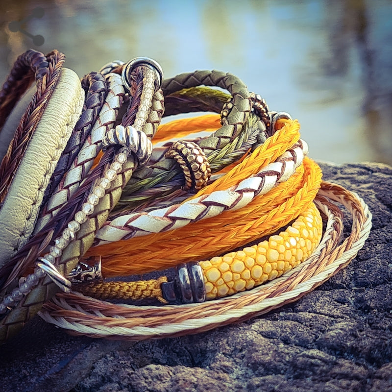 Die Knüpftechnik des "Hitchens" hat ihren Ursprung bei den amerikanischen Ureinwohnern, speziell bei den Navajo und anderen nordamerikanischen Stämmen. Diese kunstvolle Technik wurde über Generationen weitergegeben und wird heute weltweit von wenigen talentierten Kunsthandwerkern verwendet, um einzigartige und hochwertige Stücke aus Pferdehaar zu kreieren.