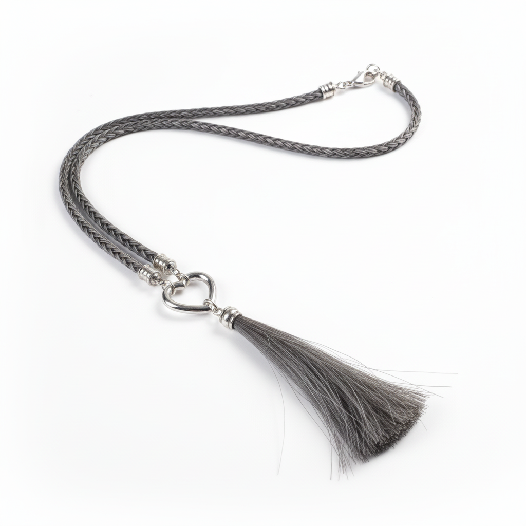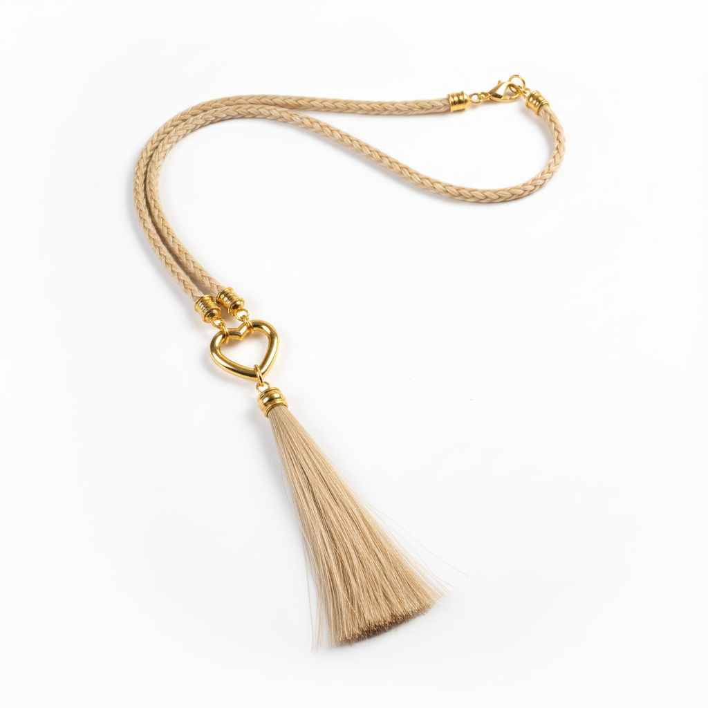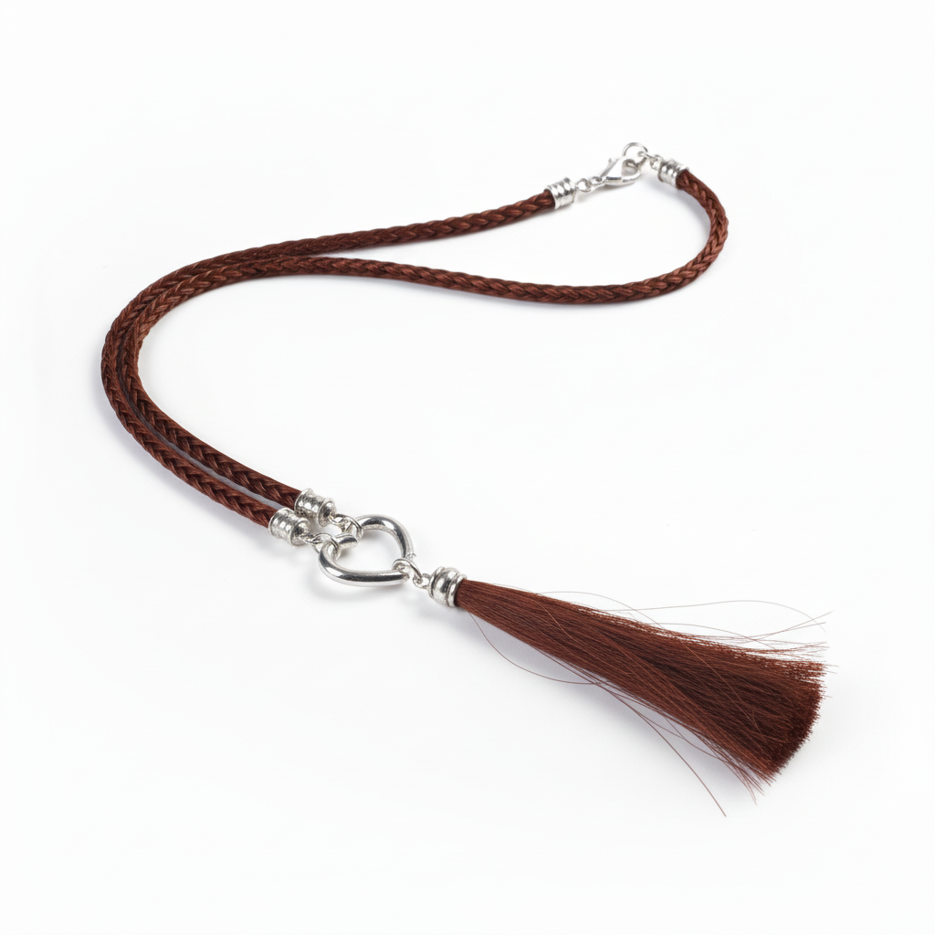 Das Herzstück dieser Kette ist ein sorgfältig geflochtener Pferdehaarstrang, der mit einer detailreichen Pferdehaartassel aus Mähnenhaar versehen ist. Das Pferdehaar verleiht dem Schmuckstück einen warmen, natürlichen Look und macht jede Kette zu einem persönlichen Erinnerungsstück.
