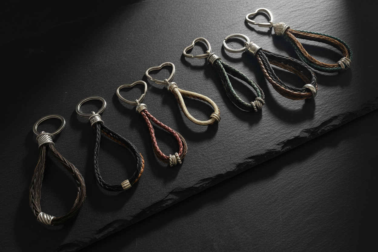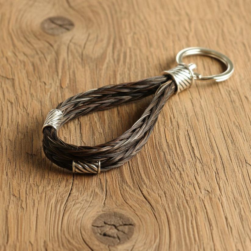Schlüsselanhänger mit 3 geflochtenen Pferdehaarsträngen