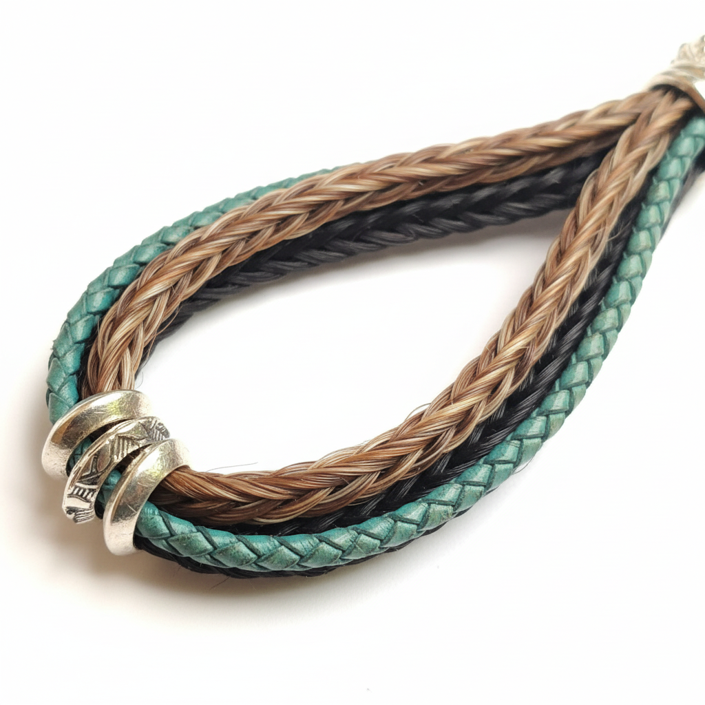• Schlüsselanhänger mit 2 geflochtenen Pferdehaarsträngen