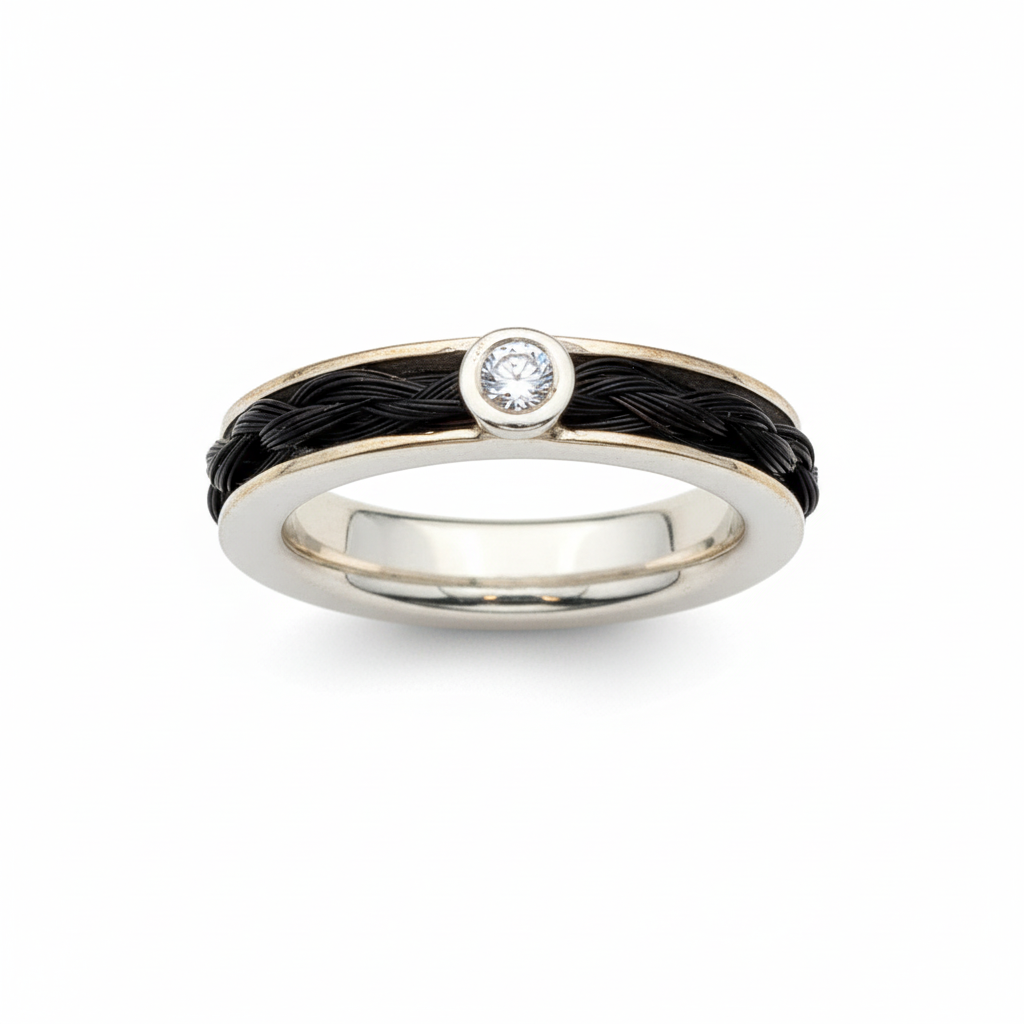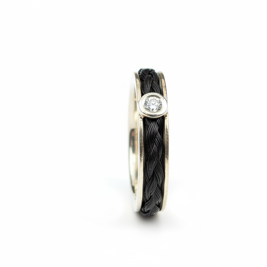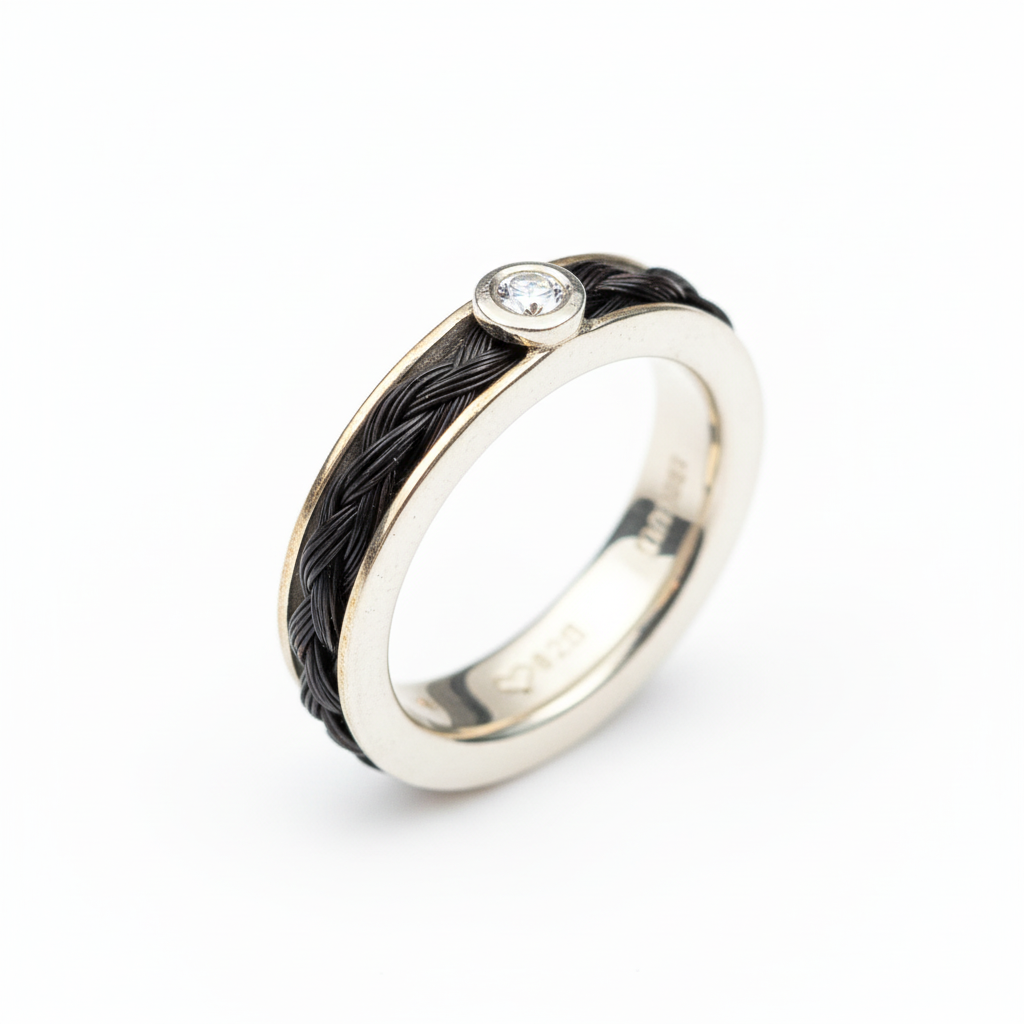 Jeder Ring wird in liebevoller Handarbeit von erfahrenen Goldschmieden in der Schweiz gefertigt. Das natürliche Pferdehaar wird sorgfältig verarbeitet und mit den glänzenden Zirkonia-Steinen in Sterling Silber gefasst, wodurch ein einzigartiges Unikat entsteht.