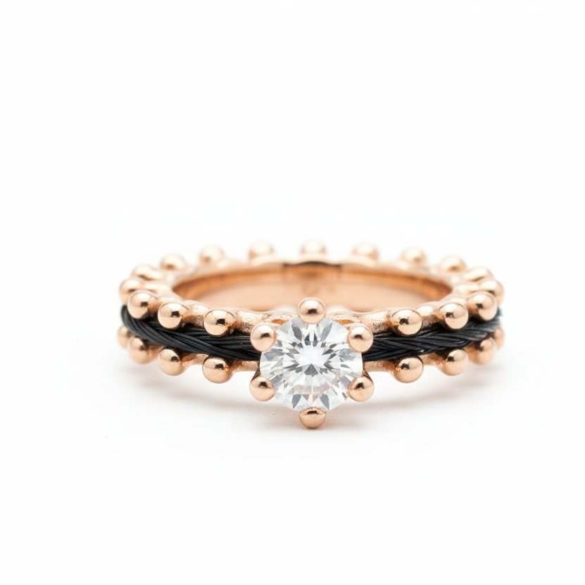 Ringe aus Pferdehaar mit Rauchquarz und echtem Rotgold - Schweifhaar - Pferdehaarschmuck Cavallin Schweiz