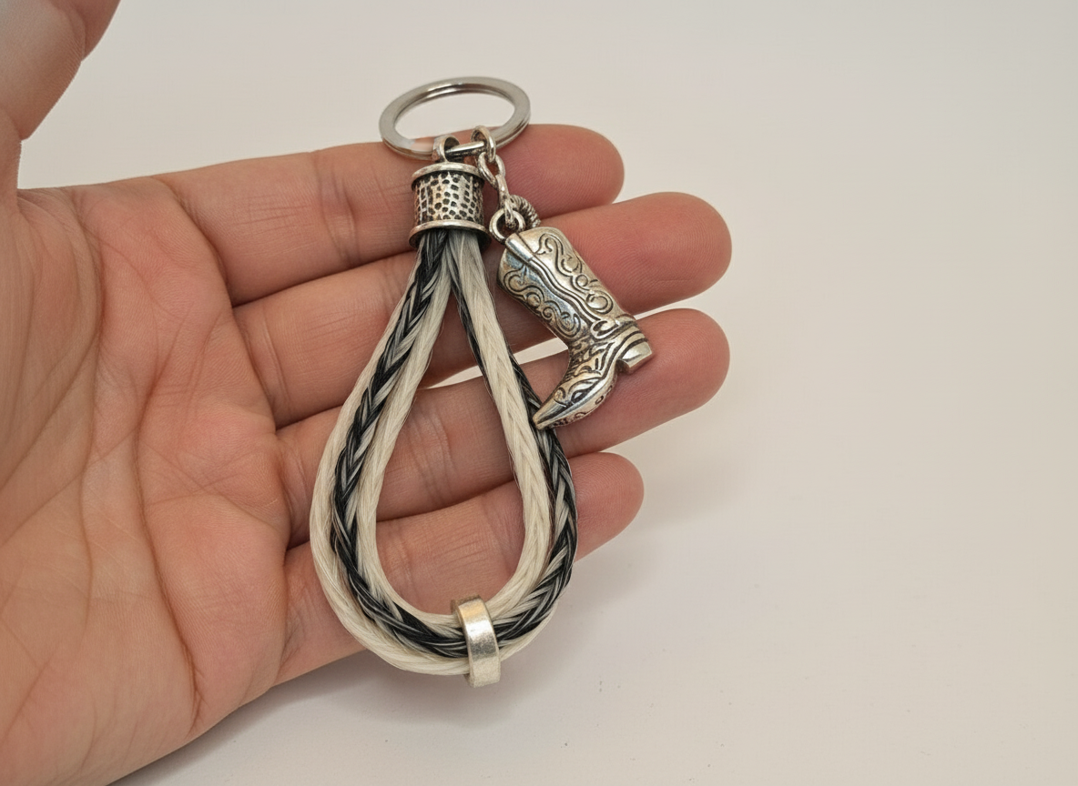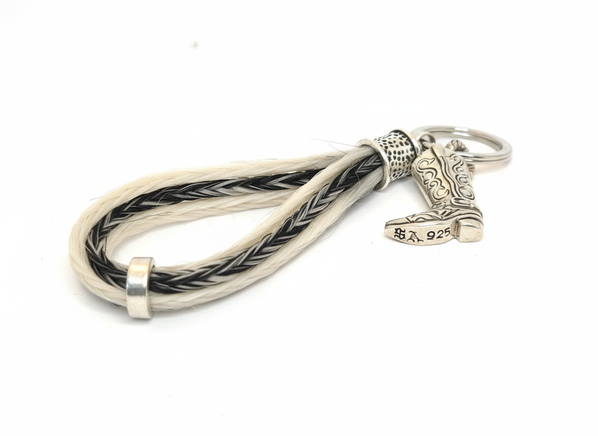 • Mehrsträngiges Pferdehaar: Weiße, schwarze und graue Stränge kunstvoll verflochten