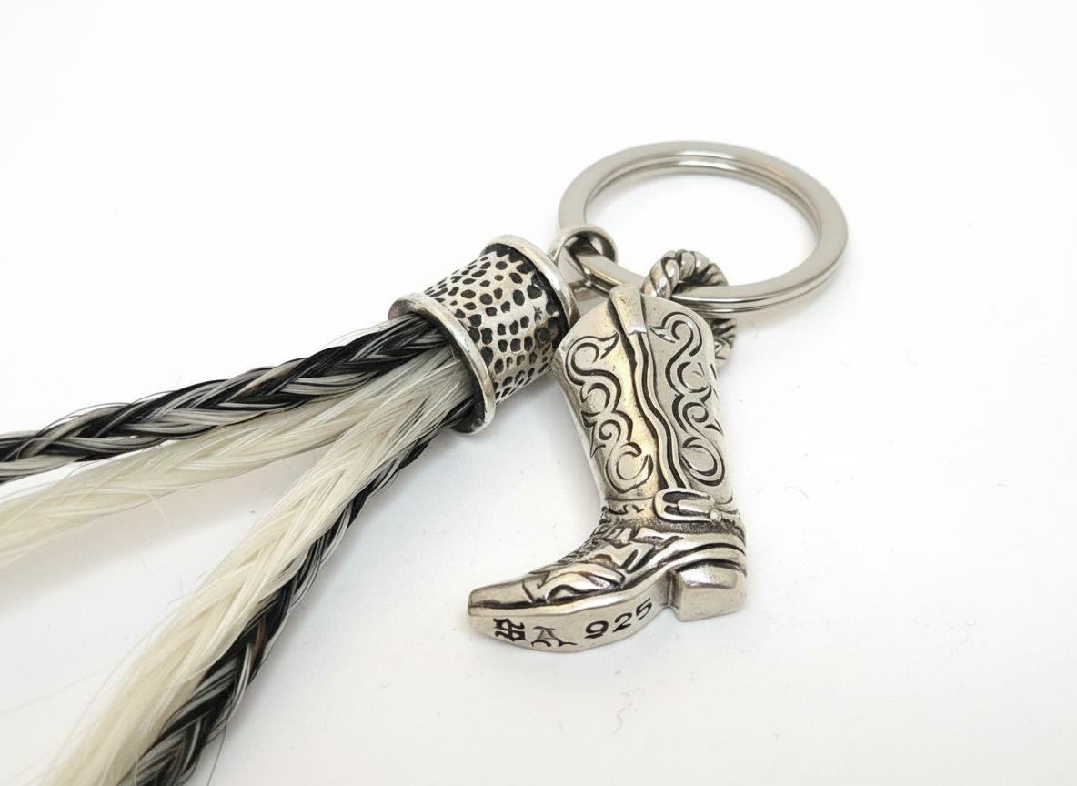 Ein außergewöhnlicher Schlüsselanhänger, der den Geist des Wilden Westens mit der persönlichen Bindung zu Ihrem Pferd vereint. Der detailreich gestaltete Cowboystiefel aus Sterling Silber 925 symbolisiert Freiheit, Abenteuer und die besondere Beziehung zwischen Reiter und Pferd.