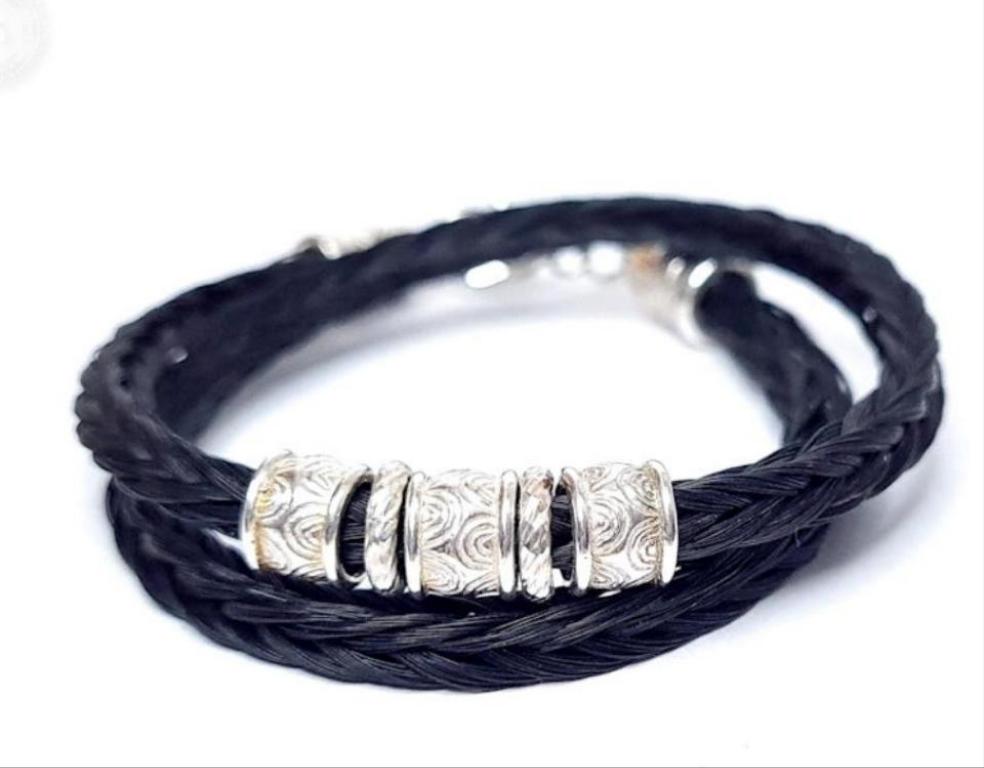 Jedes Armband ist ein Unikat, da es aus natürlichem Schweifhaar gefertigt wird. Die Kombination zweier Farben macht jedes Stück zu einem besonderen Erinnerungsstück.